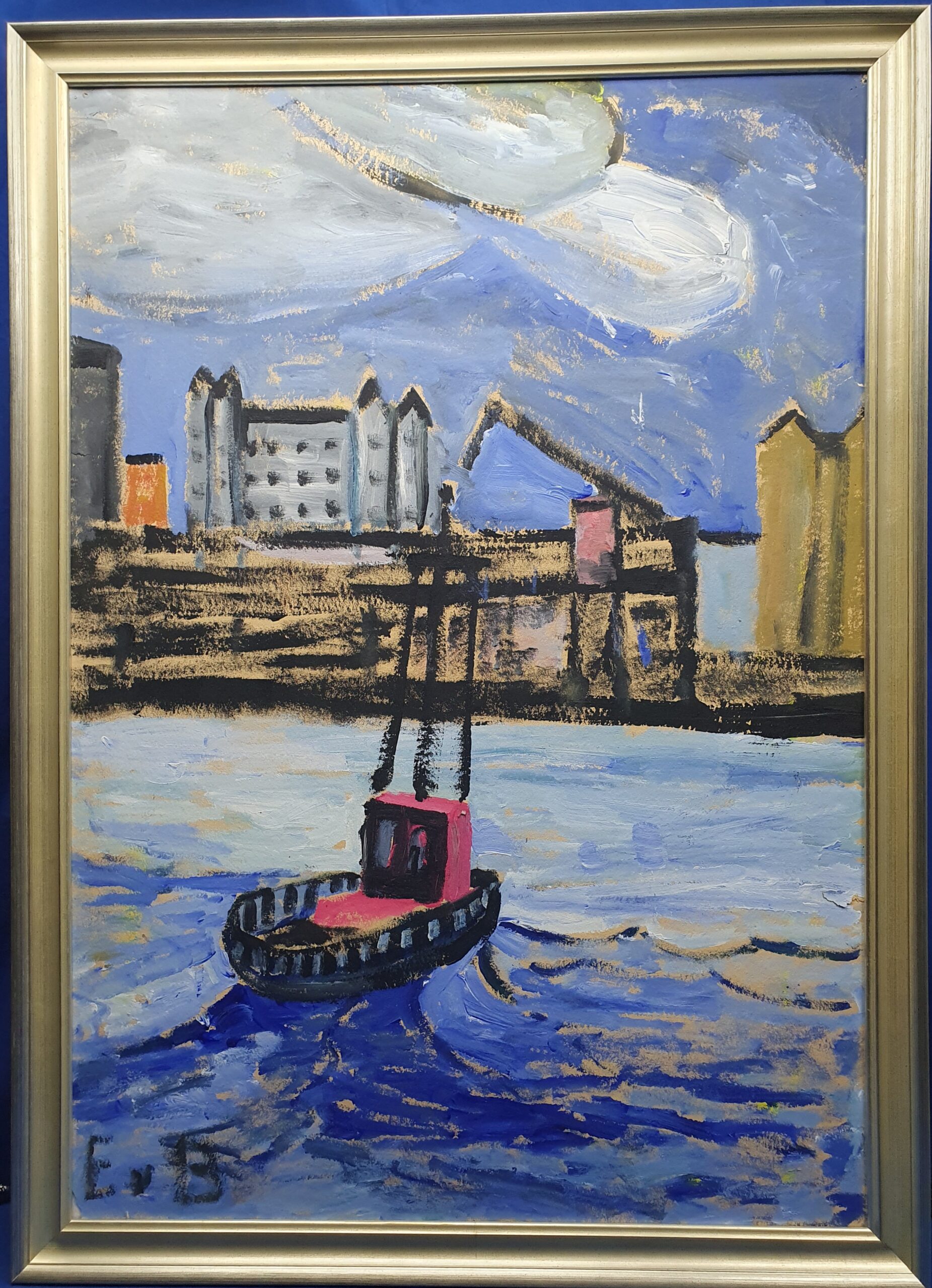 Eero von Boehmi suurepärane töö. Kujutatud on Helsinki sadama vaadet, mis on tuttav ka igale põhjanaabreid külastanud eestlasele. Uus korralik raam. Mõõdud ca 80 x 100 cm. Hind 2600.- eurot.