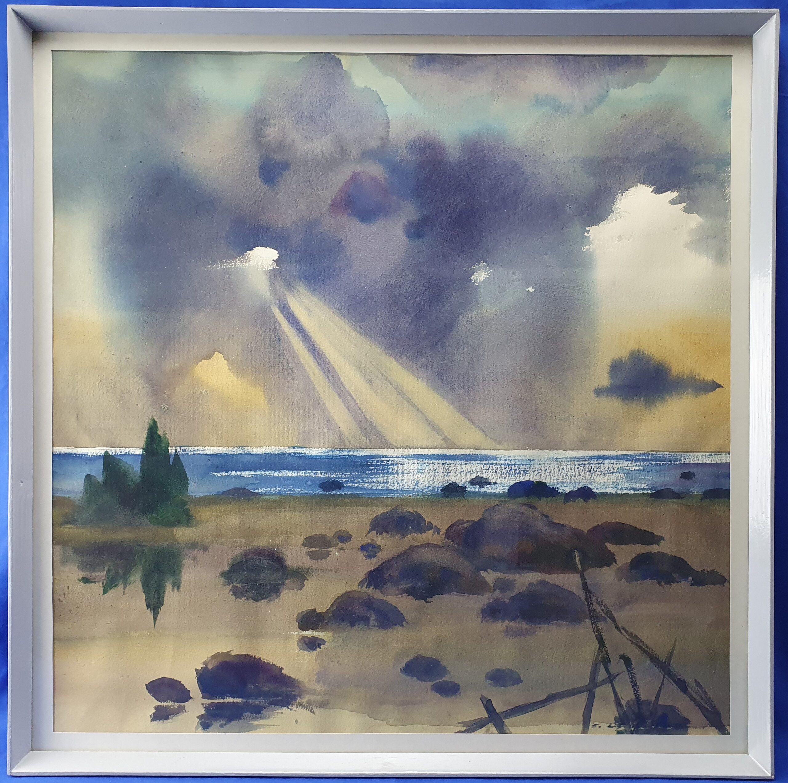 Enno Lehise suvist meeleolu loov tore akvarell. Mõõdud raamiga ca 72 x 72 cm. Hind 560.- eurot.