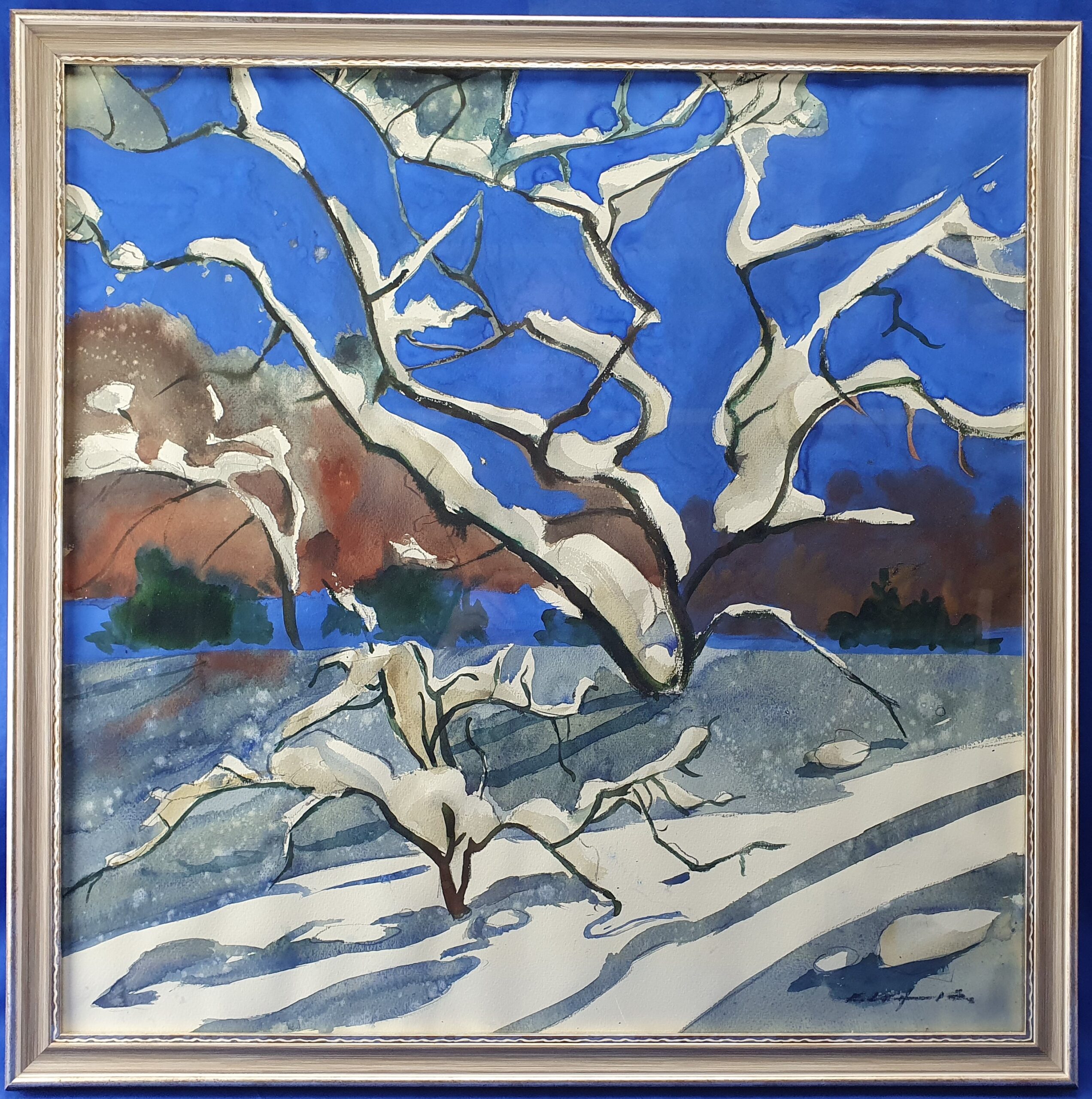 Enno Lehise eriliselt meisterlik akvarell. Mõõdud raamiga ca 74 x 74 cm. Hind 1200.- eurot.