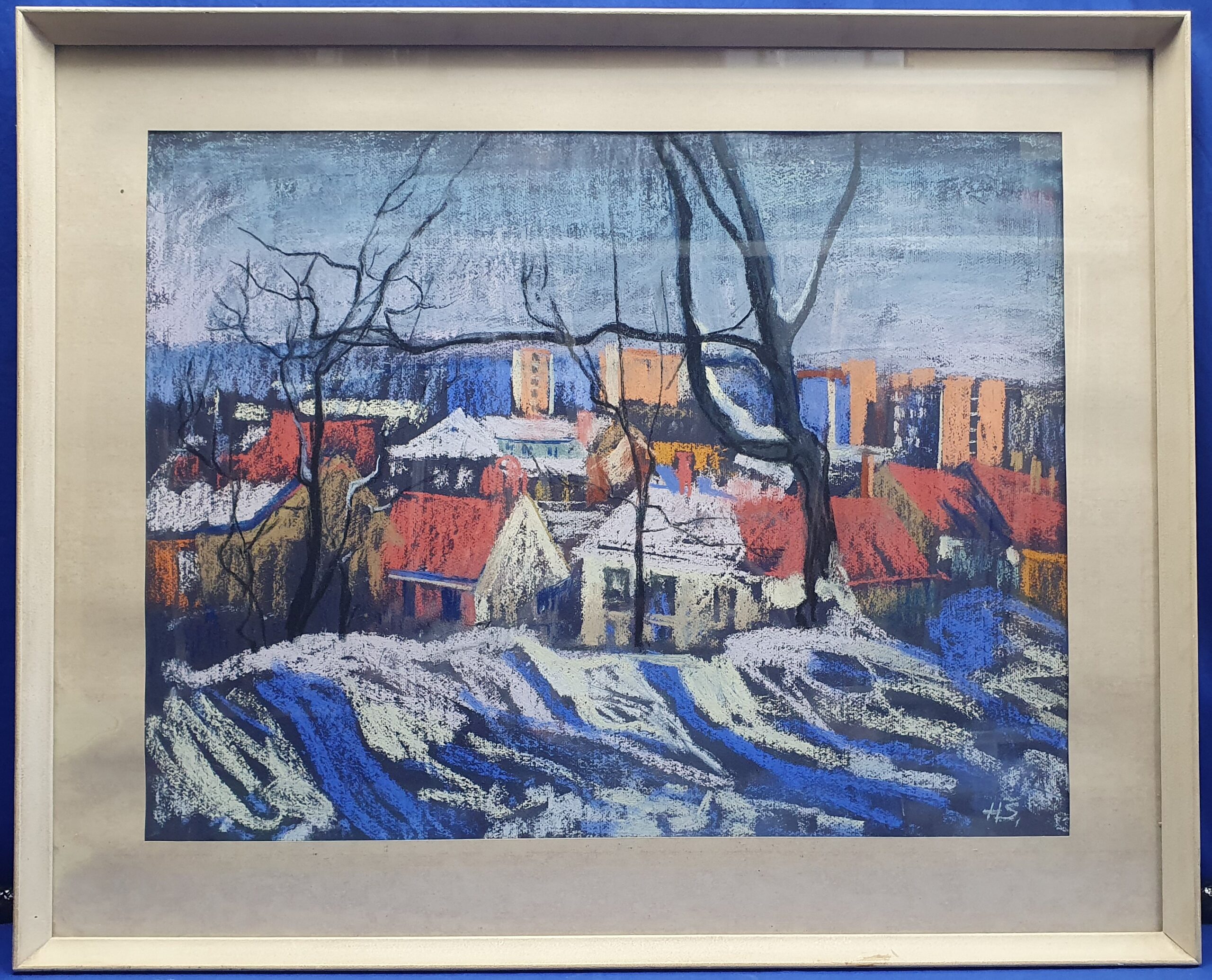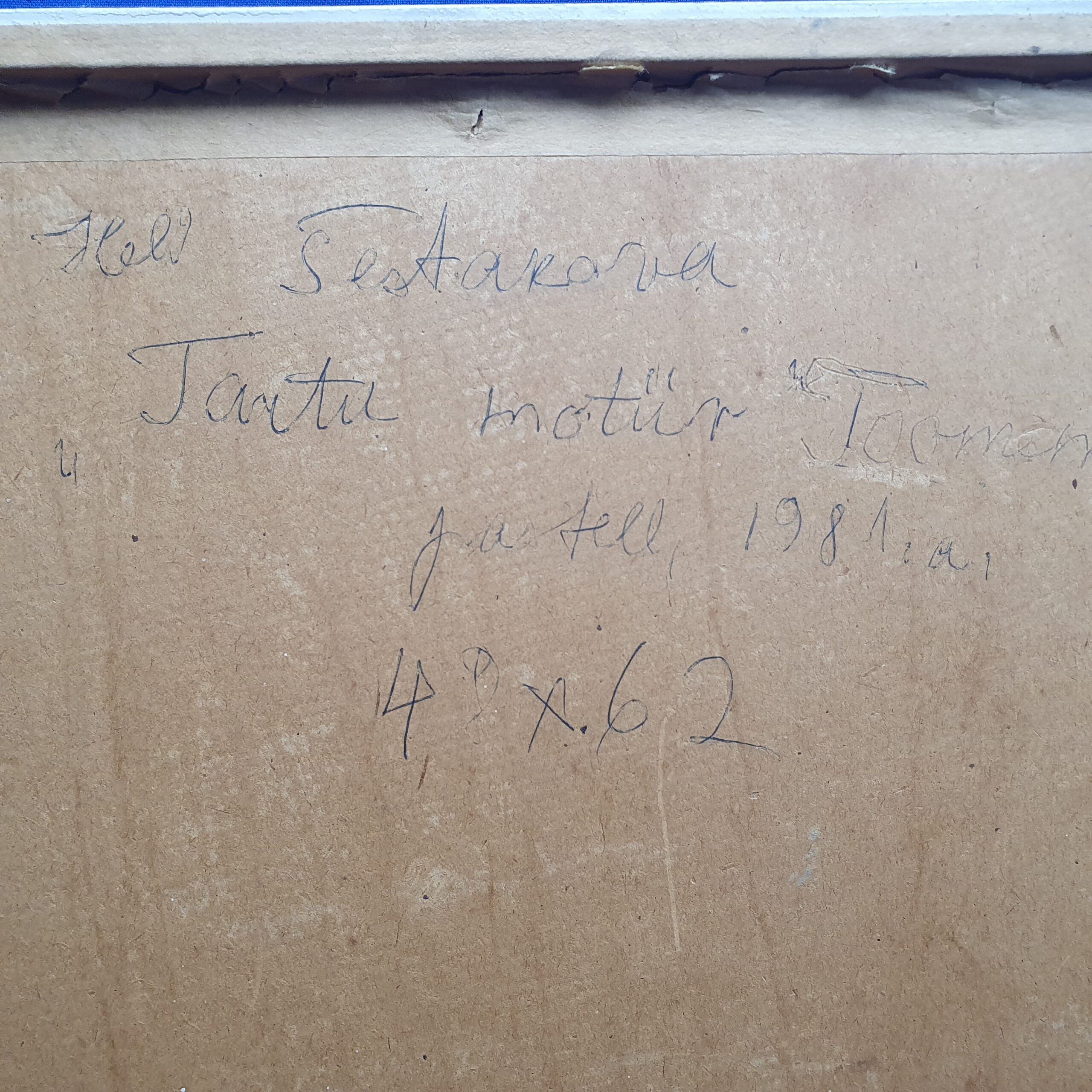 Heli Sestakova suurepärane vaade Tartu Toomemäelt. Mõõdud koos raamiga ca 79 x 64 cm. Hind 1250.- eurot.