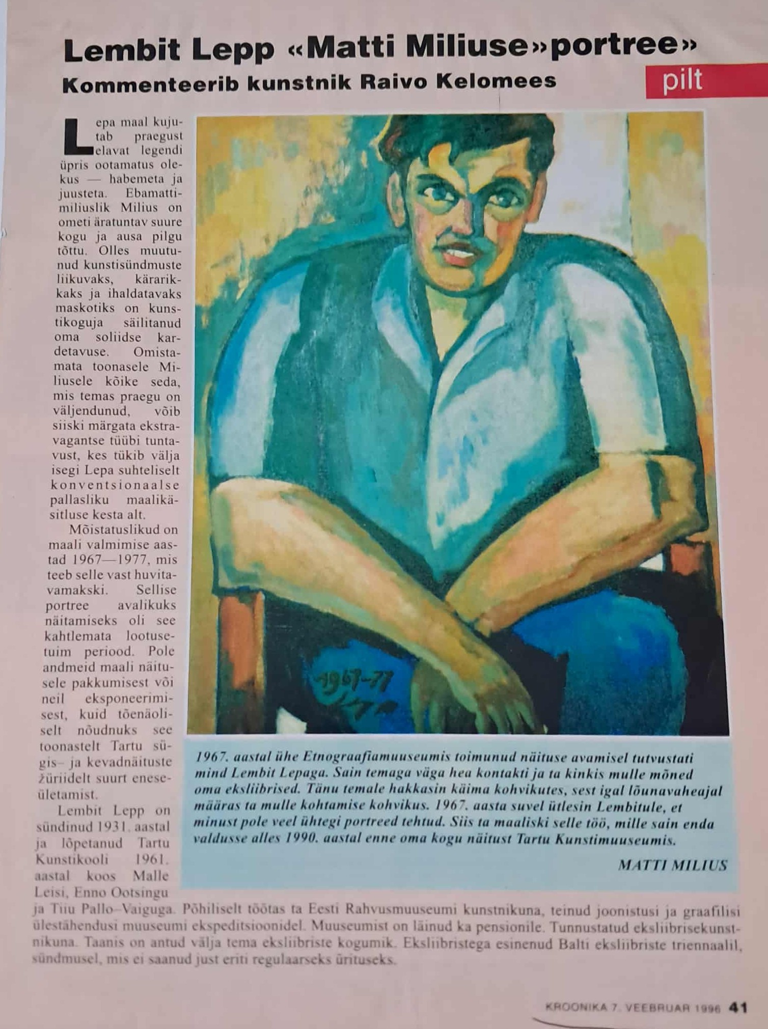 Lembit Lepp oli eesti maalikunstnik ja graafik. Töötas aastakümneid Eesti Rahva Muuseumi kunstnikuna. Õlimaal lõuendil. Mõõdud 71 x 87 cm. Hind 2400.- eurot!